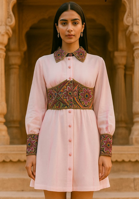 In this section explore the designs which brings together the rich textile traditions of different Indian states, blending two distinct regional crafts into each garment. By fusing heritage techniques such as weaving, embroidery, printing, or painting from separate regions, each piece tells a unique cultural story. These traditional crafts are reimagined through modern, easy-to-wear silhouettes like shirts, co-ords, and dresses designed for today’s lifestyle while rooted in India’s artisanal legacy.