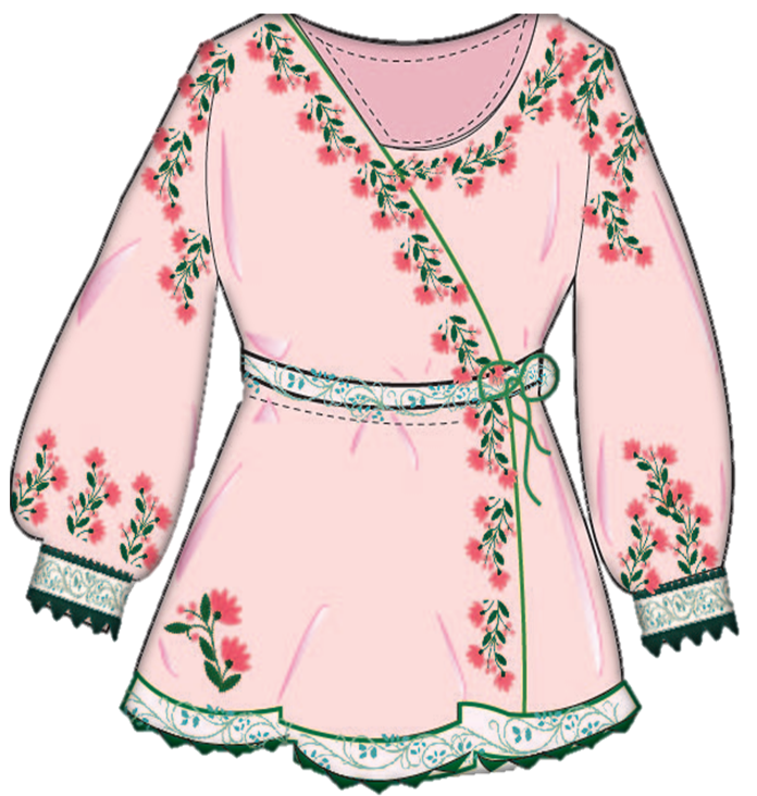 - Embroidery done along the wrap border, shoulder, and sleeve hems