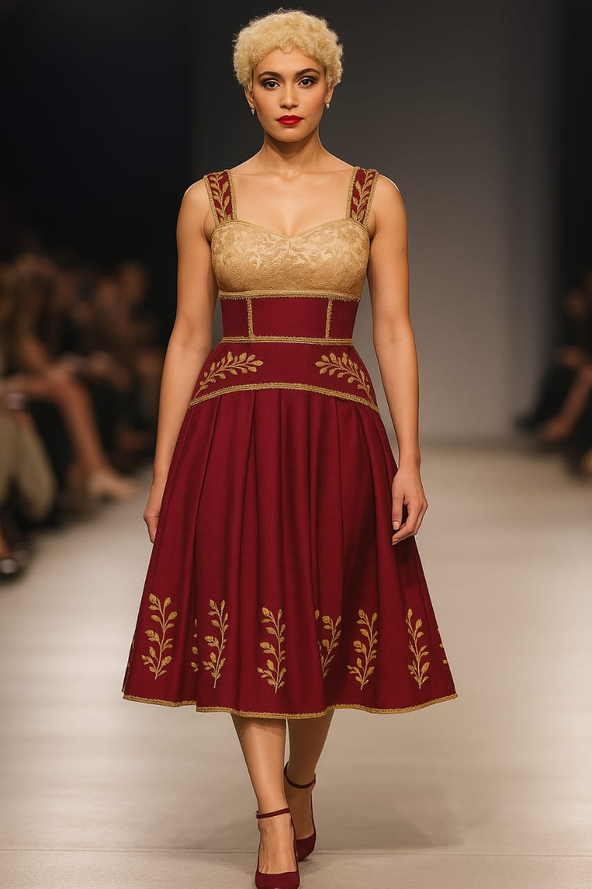 These exquisite crafts are reimagined through globally admired forms like the romantic prairie skirt, evoking the spirit of 19th-century American frontier fashion, and the boned bustier with a sweetheart neckline, a sculptural yet delicate nod to classical European couture. The result is a curated expression of cultural fusion, where luxury meets lineage, and structure meets softness crafted for the modern muse who carries both tradition and innovation in her stride.