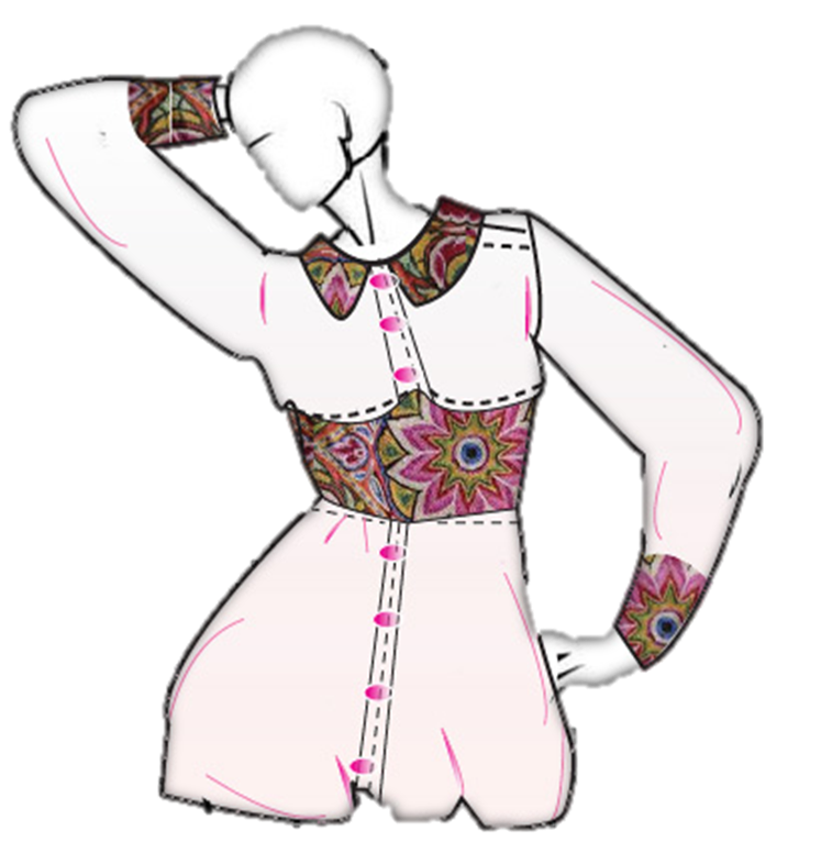 This long shirt explores the harmony of structure and softness through a sustainable Banana Silk-Cotton blend that drapes with a gentle sheen. Romantic pink brushstrokes form a fluid base, accented by rich Mochi embroidery work on the collar, cuffs, and corset-style midsection.