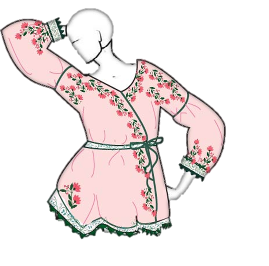 This Chanderi wrap top features rare Phool Patti embroidery hand-folded lotus petals from Aligarh artisans. Dyed in a natural soft pink, it blends comfort with cultural storytelling.